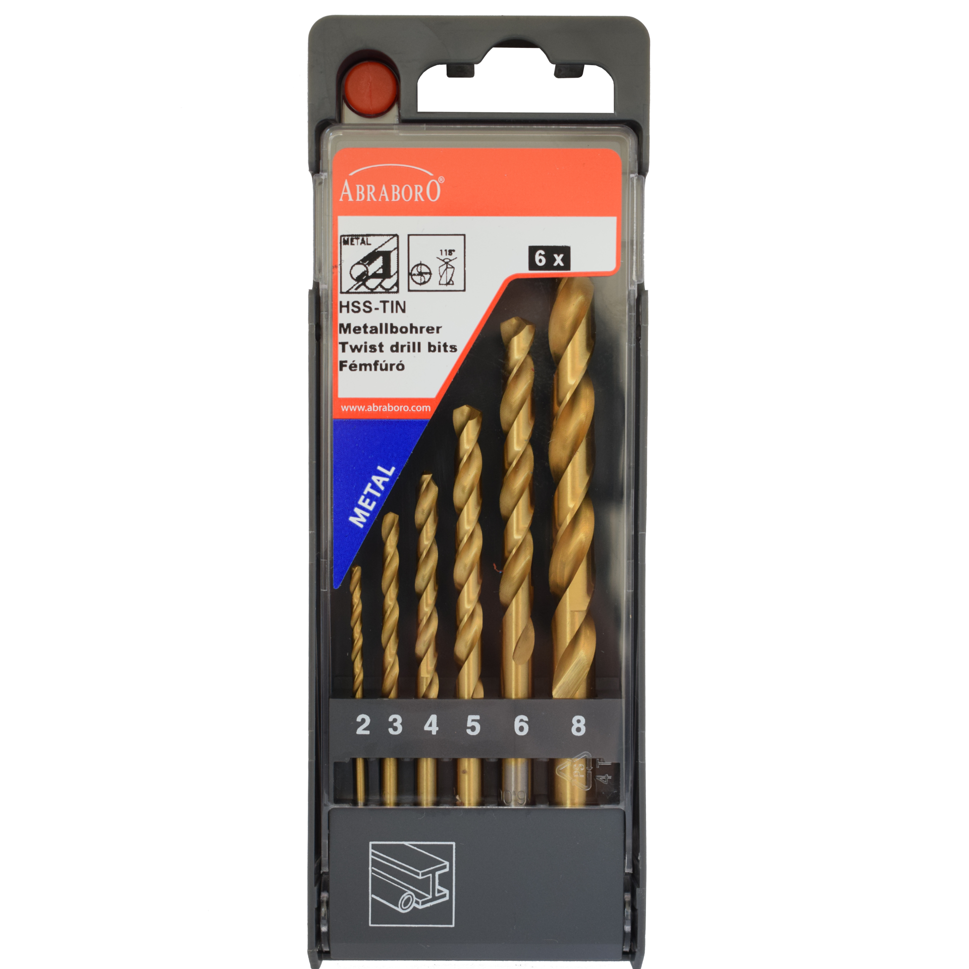 Abraboro HSS-GS TIN 6 részes fémfúró készlet, műanyag dobozban