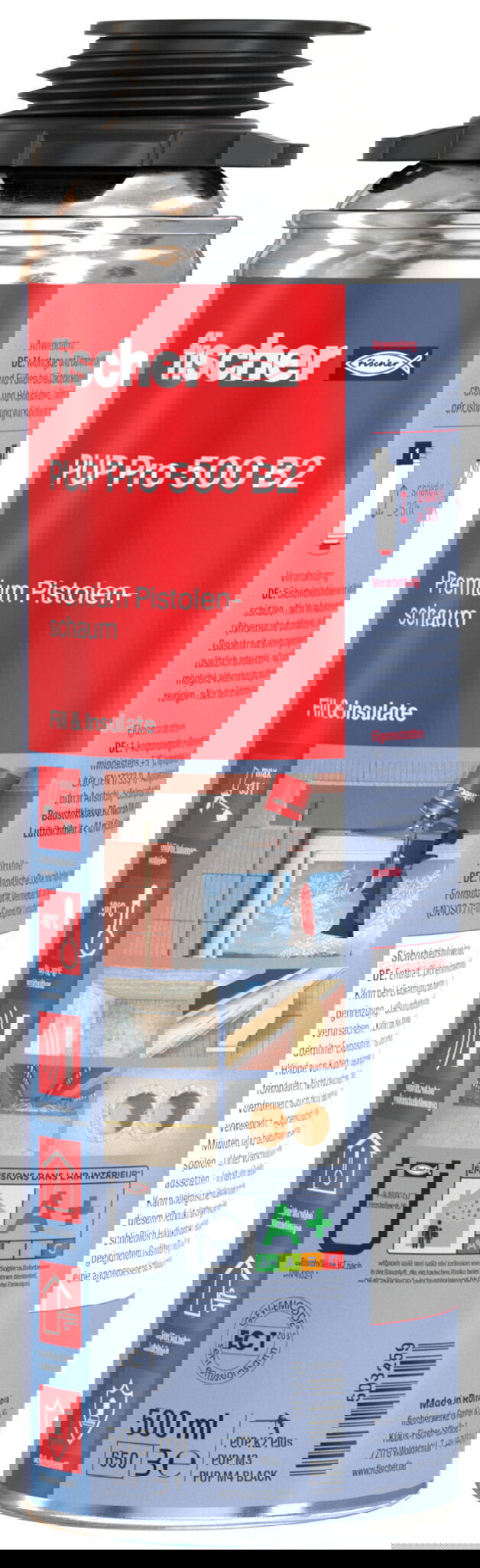 Fischer PUP Pro 500 B2 egykomponensű pisztolyhab, szürke, 500 ml